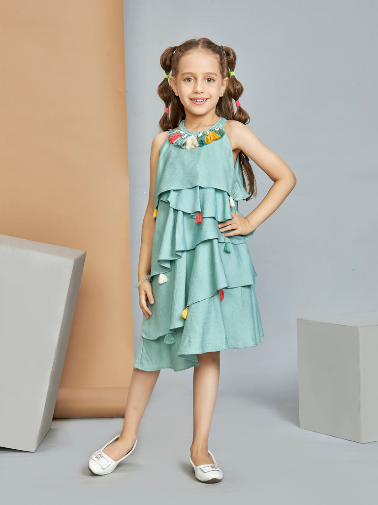 This A-line dress features a round neck, elbow-length straight sleeves, and a flared fit. This festive special dress is made from lightweight fabric so your kids can play all day long looking their best.