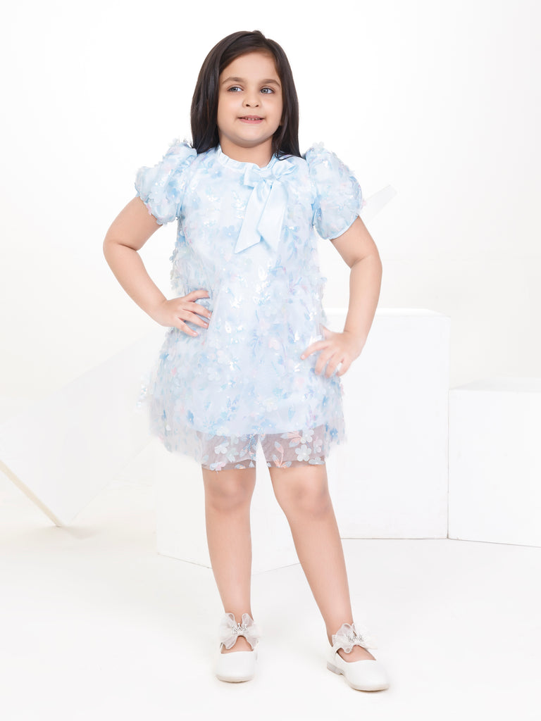 Girls Sequins Dress 16997Embrace the charm of Amazing Autumn with this elegant A-line, knee-length velvet baby girl fancy dress for weddings. Designed with a round neck, full straight sleeves, a flared fit, and a chic belt, it’s perfect for party occasions.