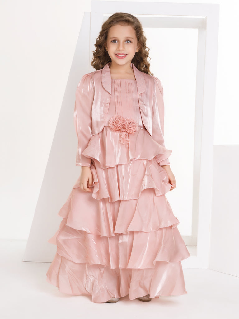 This beautiful glitter dress from our "Amazing Autumn" collection has umbrella sleeves and beautiful glossy fabric, ideal for festive celebrations. The round collar and cute details around the hem add to the grace and charm of this outfit.