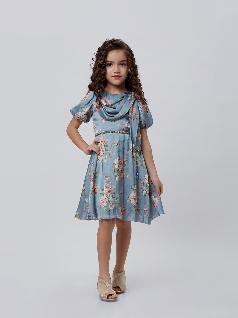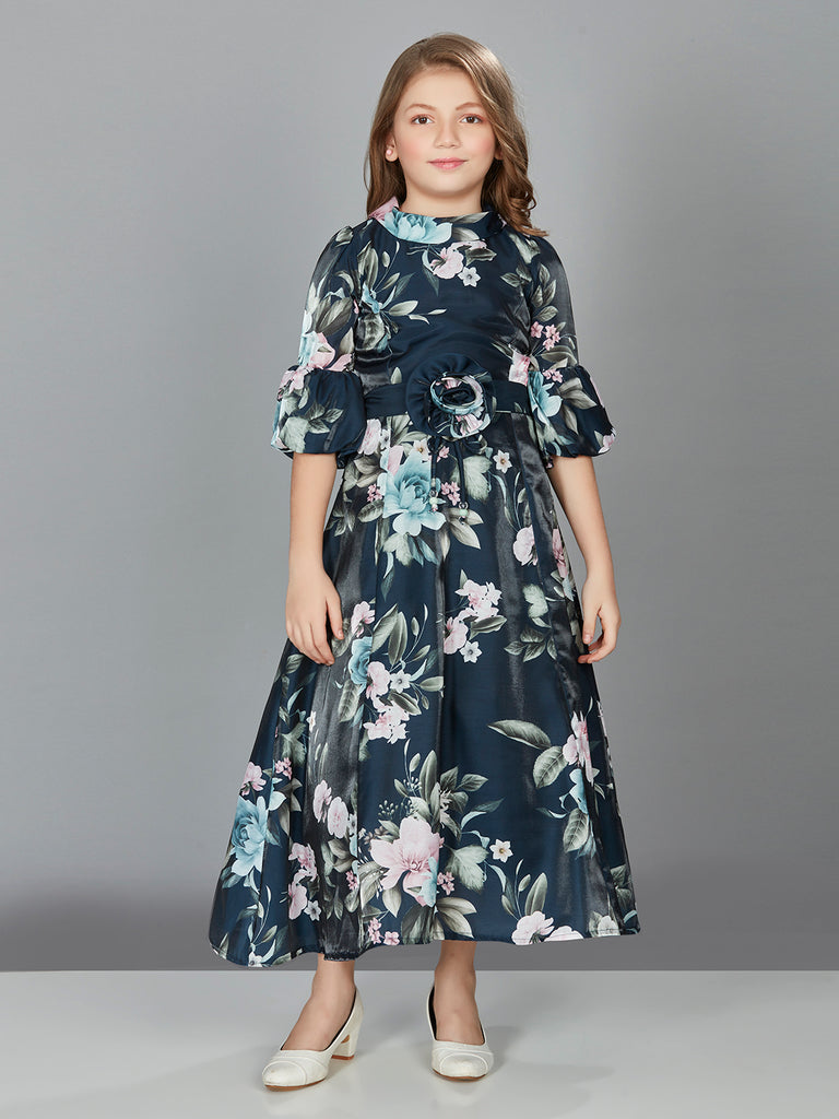 This knee-length, floral Diwali dress for teenage girls with balloon sleeves and shining fabric is a perfect piece for your festive party. It is airy, stylish and adds a whimsical touch to your darling's beauty. Not to mention, it comes with a matching purse and belt.