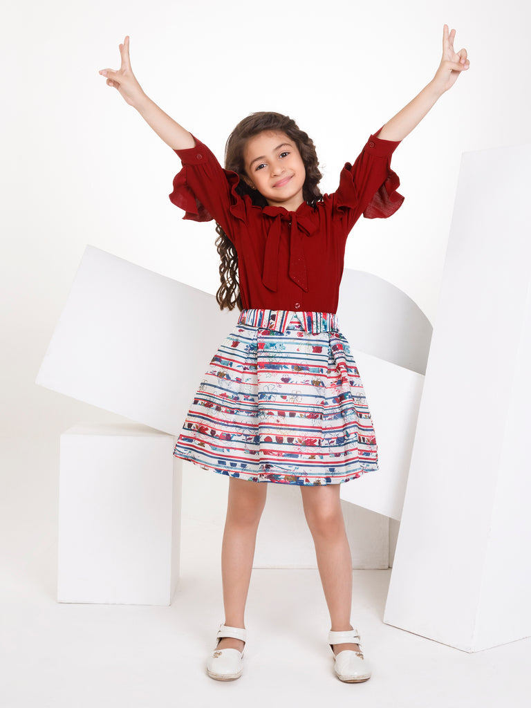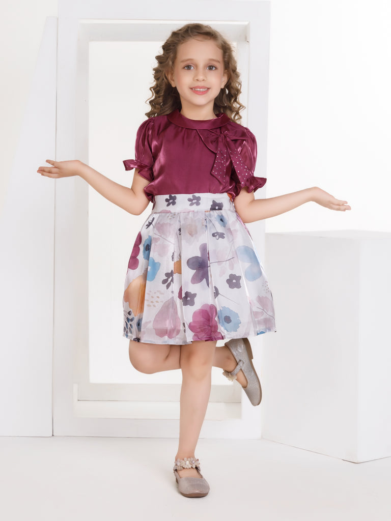 One beautiful option is the Girls Floral Print Skirt with Top (Product Code: 17332). It is playful yet elegant, with just the right amount of frill. You can check it out here: www.peppermint.in/products/girls-floral-print-skirt-with-top-17332